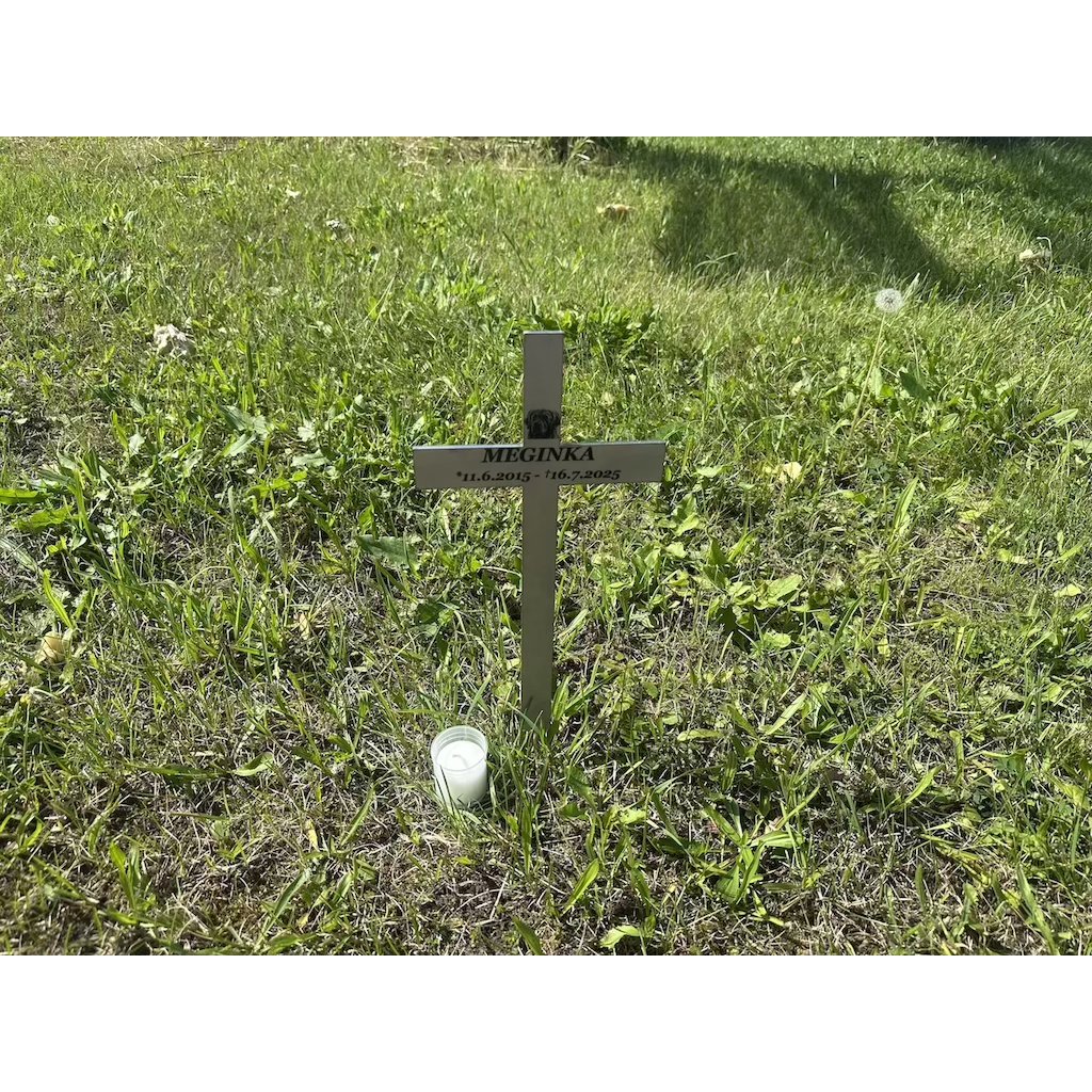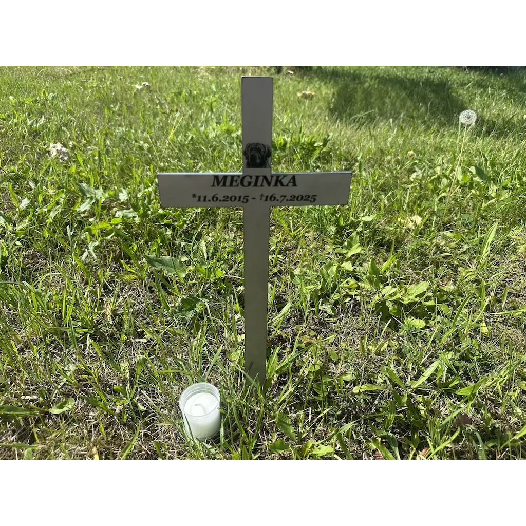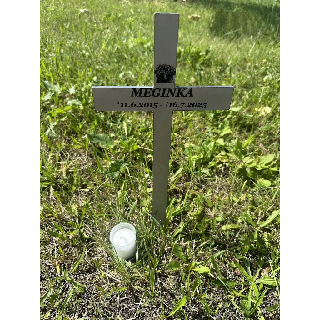 Na kříž gravírujeme jméno a data podle vašeho přání. V horní části kříže je navíc možné umístit fotografii mazlíčka. Stačí, když k objednávce přiložíte fotku – my sami vybereme vhodný výřez a postaráme se o kompletní úpravu i umístění fotografie.